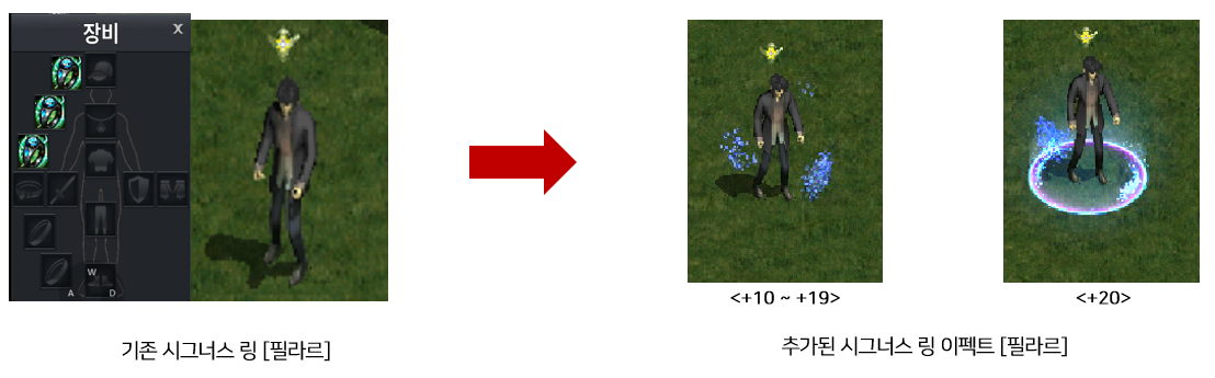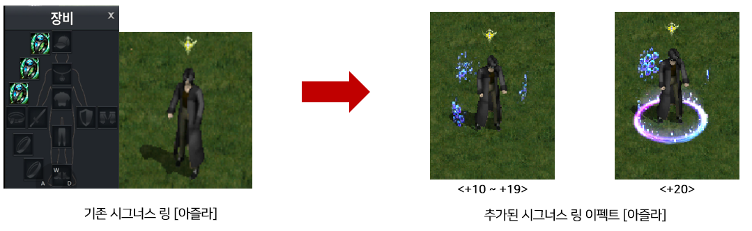 - 시그너스 링 장비의 이펙트가 아래와 같이 추가됩니다.